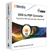 4Media DVD to PSP Converter for Mac rips and converts movie DVDs to MP4, H.264/MPEG-4AVC videos and MP3/M4A audios for playing on PSP/PS3. It processes the conversions with super-high speed and fully supports outputting PS3 video (MPEG-4) in 480p and 720p resolutions.