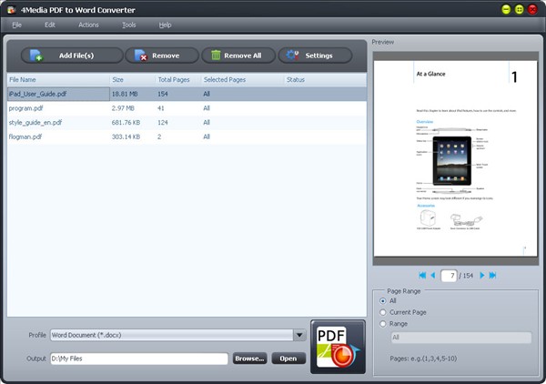 If you download a PDF to Word converter software, it will become so easy. 4Media provides a great PDF to Word Converter for users to download, and it has pretty high recognition among all users. Just do as the follows: